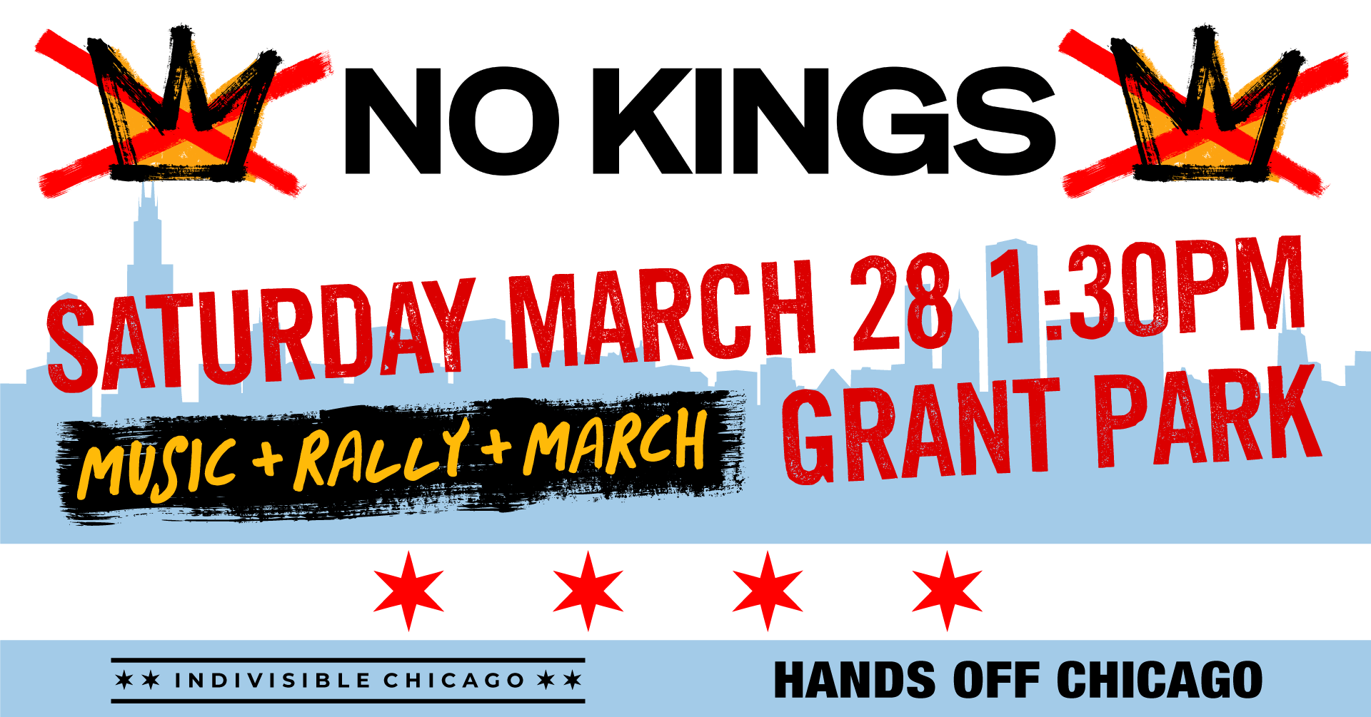 ❌👑 On March 28th, we will rise up, take to the streets, and say it loud: no thrones, no crowns, no kings–Hands off Chicago and hands off our democracy. We’re not watching history happen—we’re making it.